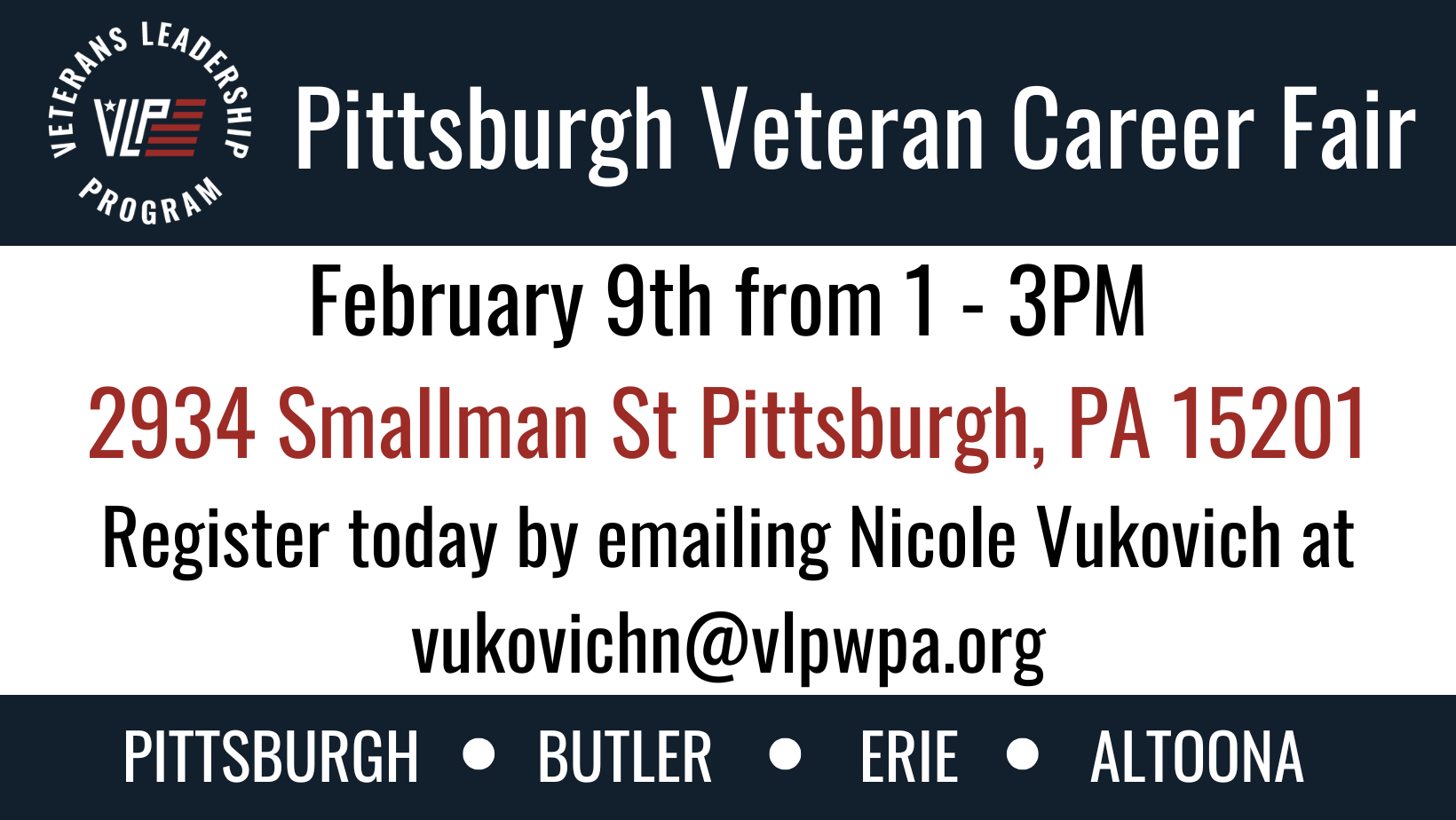 Join us to meet with Veteran friendly talent acquisition teams to discuss their hiring opportunities. Register today by emailing Nicole |